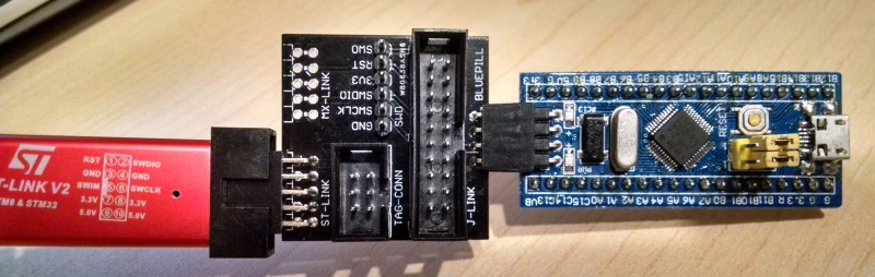 Mezi podporované programátory patří originální ST-Link programátor od STMicroelectronics, programátor ST-Link na vývojovém kitu Nucleo, Čínský ST-Link V2 a MX-link a nakonec populární J-Link od firmy Segger.