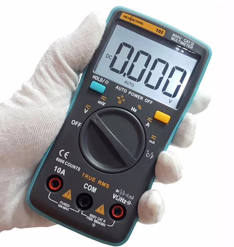 Začneme u levnějšího multimetru a to RICHMETERS RM102. Malý multimetr, který se vám pohodlně vleze do dlaně disponuje vším, co běžně potřebujete – AC i DC napětí, AC i DC proud, měření odporu, test diod, měření frekvence i kapacity.