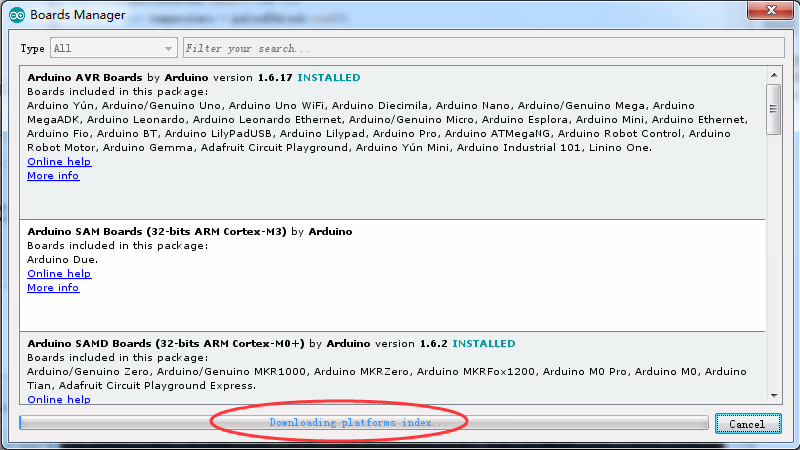 Po otevření správce vývojových desek bude seznam desek automaticky aktualizován, jak je vidět níže: