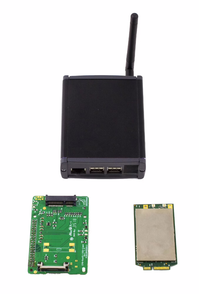 Kit navíc obsahuje hliníkovou krabičku,napájecí zdroj, externí anténu a ethernetový kabel.