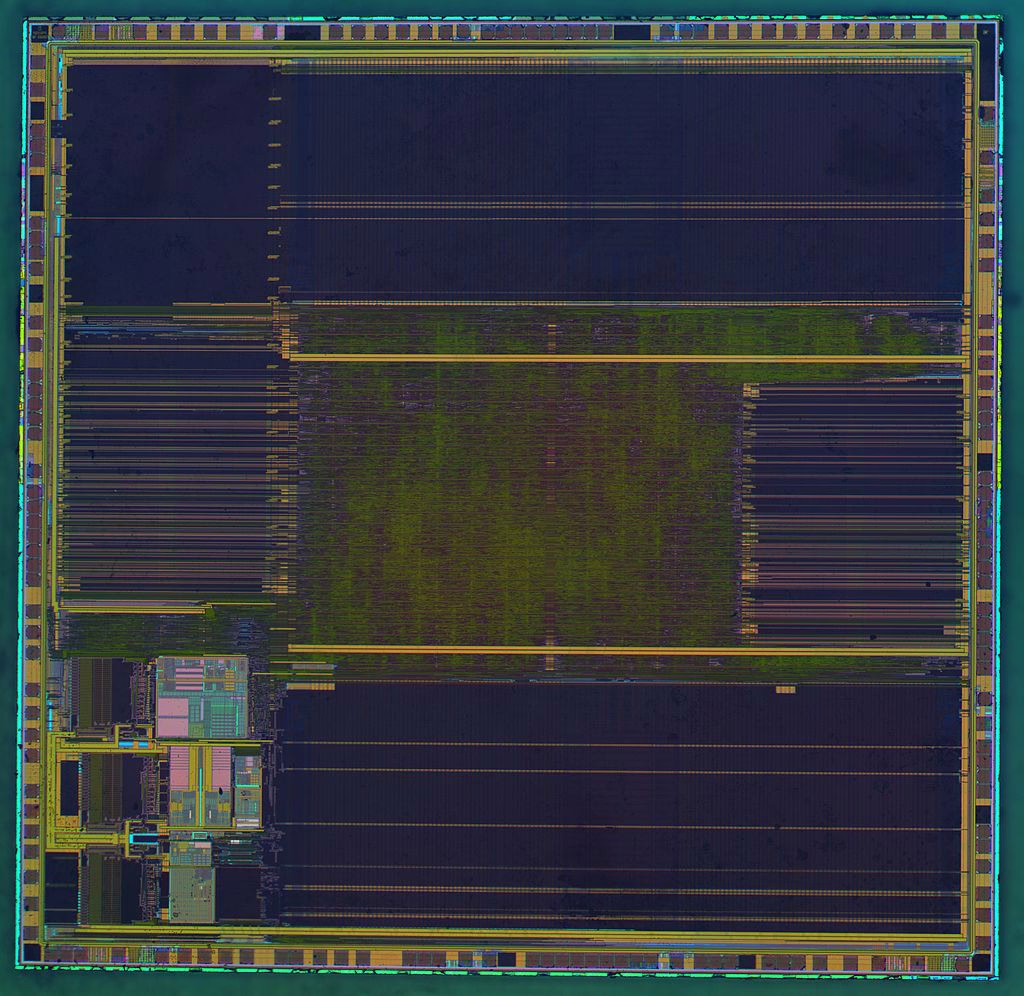 Fyzické zpracování mikrokontroléru se skládá ze dvou DIE (křemík na kterém je vytvořen mikrokontrolér). Ta druhá a menší je FLASH paměť.
