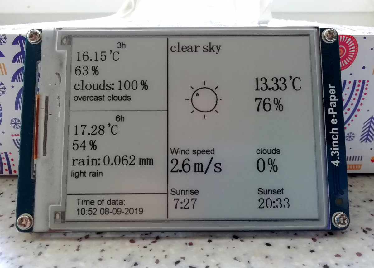 A tomhle článku právě najdete zajímavou kombinaci desky s Wi-Fi čipem ESP8266, zobrazovací jednotkou ePaper a API počasí, které poskytuje služba openweathermap.org.