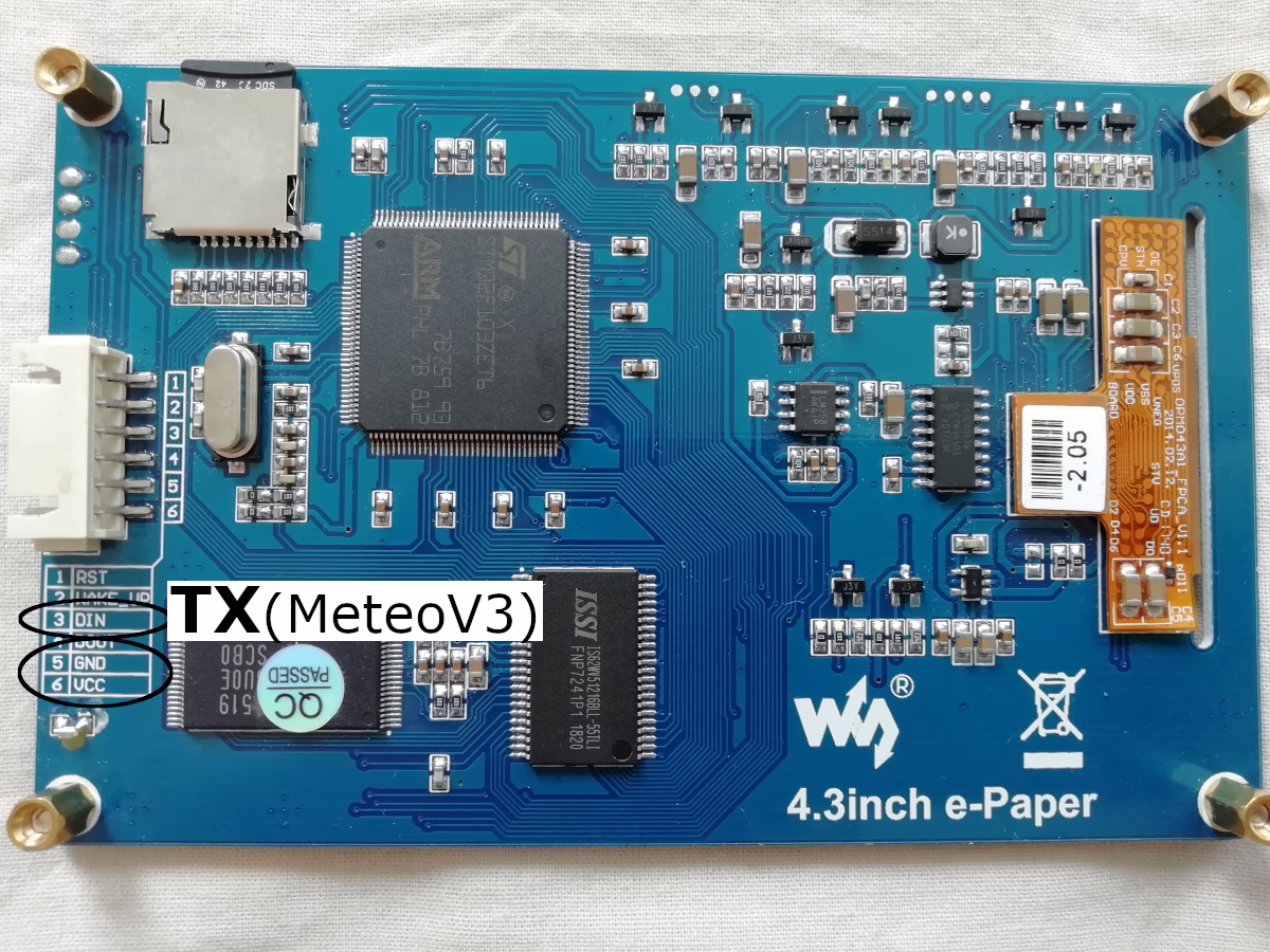 Po naprogramování desky připojte výstup TX MeteoV3 na vstup DIN ePaper.
