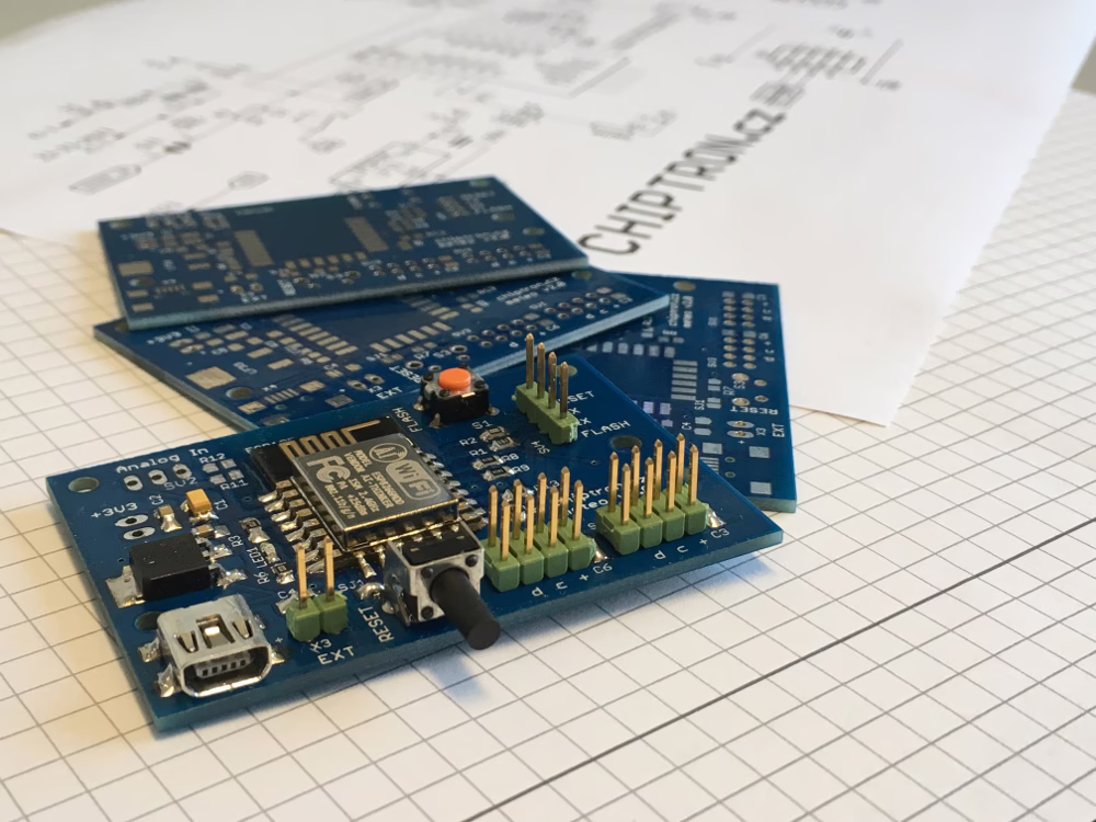 Jádrem desky zůstal ESP12E, stejný modul s ESP8266 jako používá populární vývojový kit NodeMCU.