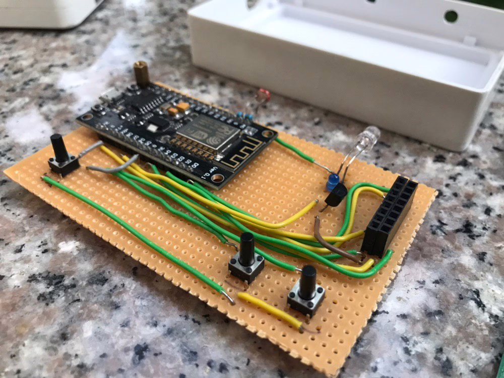 K zařízení si můžete vytisknout na 3D tiskárně i krabičku, která obsahuje místo jak NodeMCU, tak i dvě tlačítka, IR diodu a také displej OLED 256×64 SSD1332.