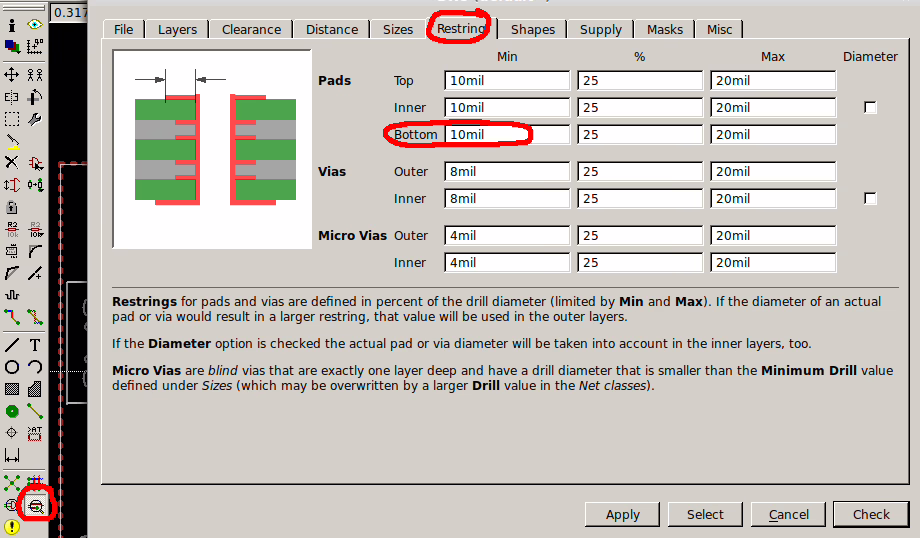 Hodnotu Copper/Dimension v záložce Distance změňte na 0mil. Znovu vygenerujte polygon.