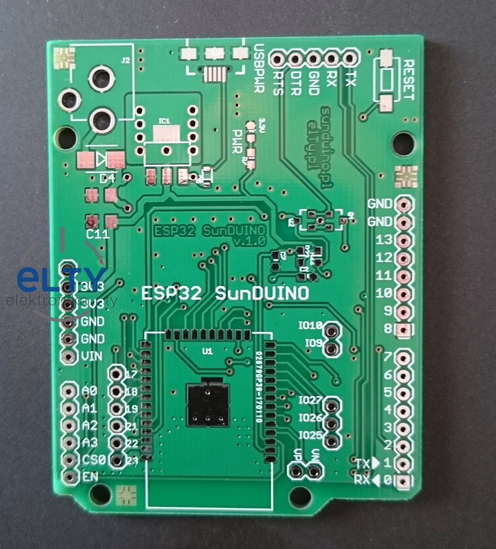 Nakonec jsem si vybral druhou jmenovanou desku – ESP32 SunDUINO v1.0. Detailnější popis desky naleznete zde (v polštině).