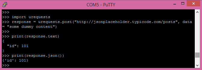 response = urequests.post(„http://jsonplaceholder.typicode.com/posts“, data = „some dummy content“)