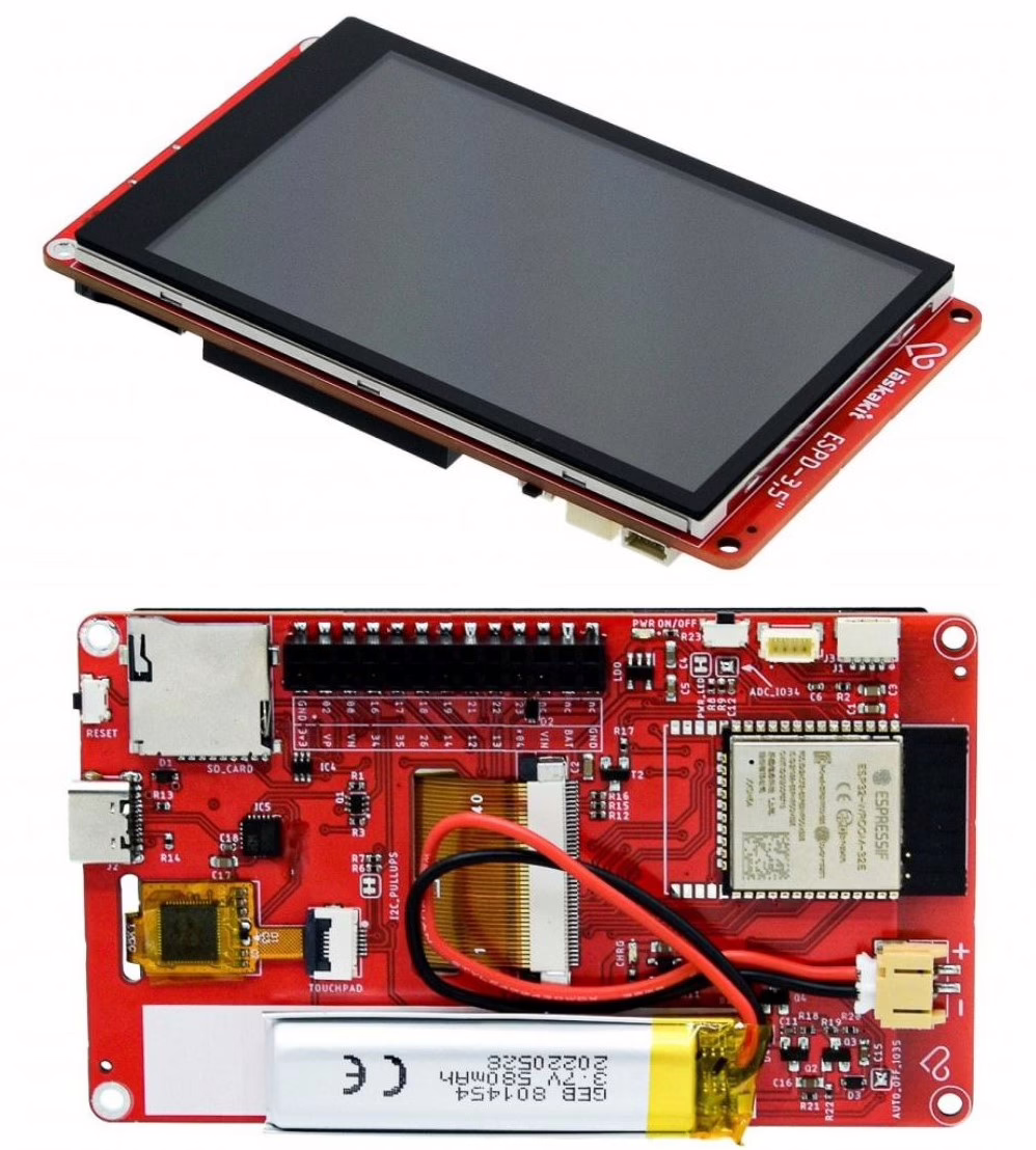 ESPD35 je deska kombinující mikrokontrolér ESP32 s velkým 3.5″ TFT displejem. Kromě toho je možné jednoduše připojit vlastní čidla skrze uŠup konektor (kompatibilní se SparkFun Qwiic a Adafruit STEMMA).