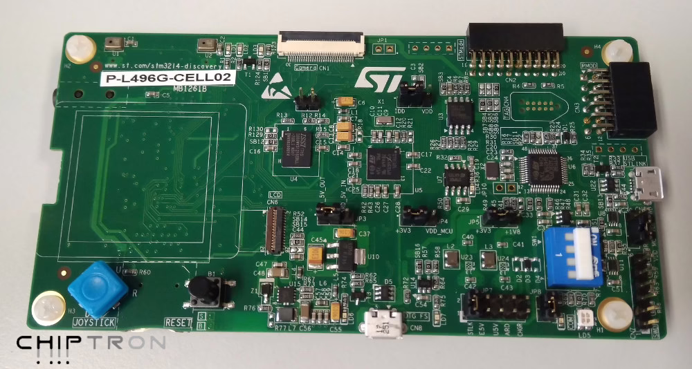 Vývojová deska obsahuje ultra low-power mikrokontrolér STM32L496 s 1 MB FLASH, 320 KB SRAM a na desce je osazen v pouzdře UFBGA169.