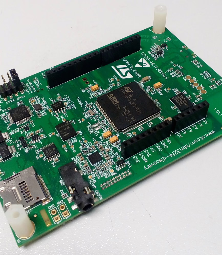 STM32F413 (STM32F423 – s kryptgrafickou jednotkou), 90nm mikrokontrolér s frekvencí až 100 MHz obsahující 10x USART, 5x SPI, 4x I2C (až 1mbit), 3x CAN, 1x SDIO, 1x USB 2.0 OTG Full-speed (FS), 2x full-duplex I²S, 3x simplex I²S, 6x PDM interfaces, 2x 12-bit ADC reaching 2.4 Msample/s, 14x 16- and 32-bit timers running at up to 100 MHz a 1 low-power timer available in Stop mode. A s True random number generator.