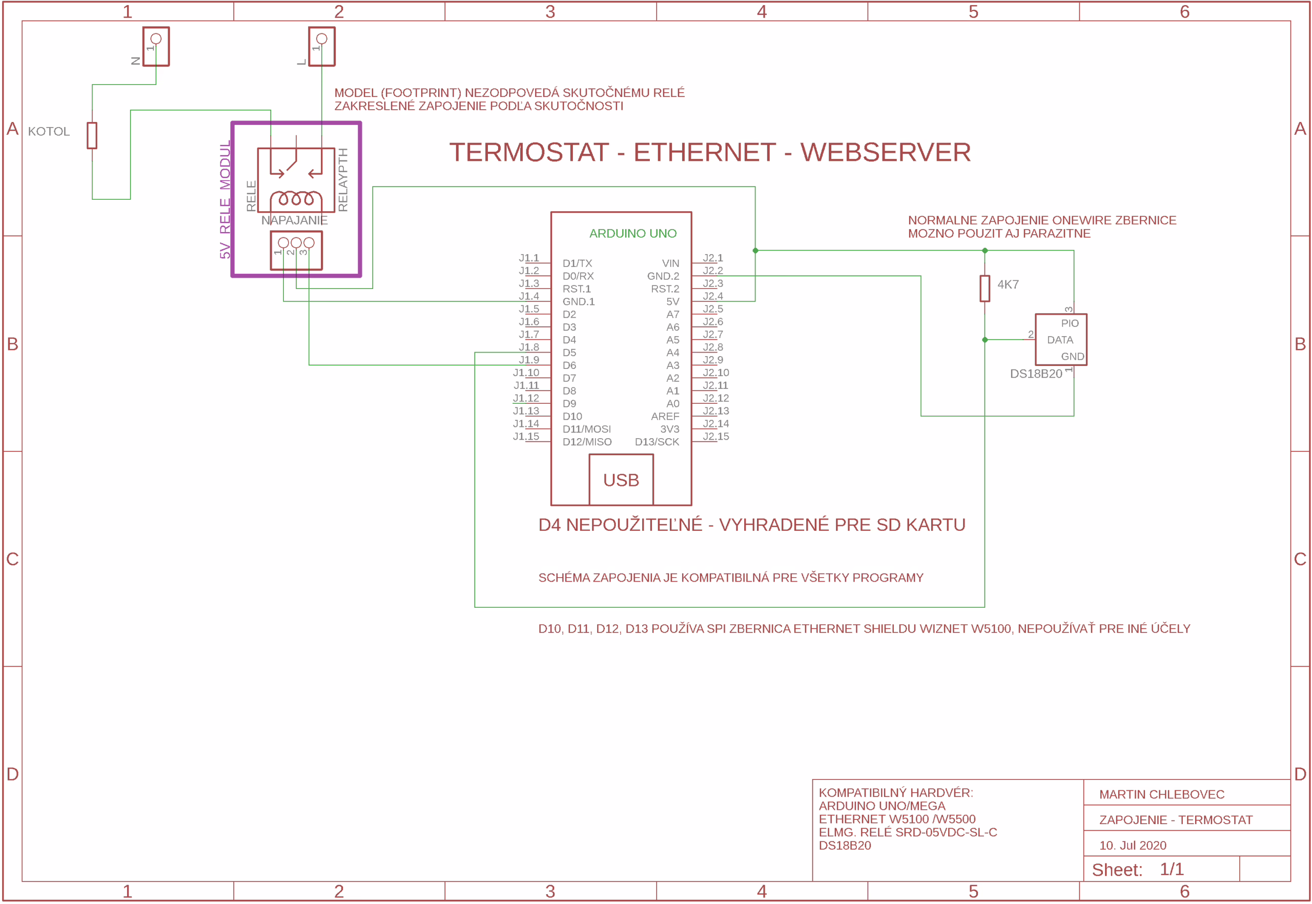 • Relé SRD-5VDC-SL-C slúžiace na spínanie kotla (ACTIVE_LOW relé so spínaním v log. 0)