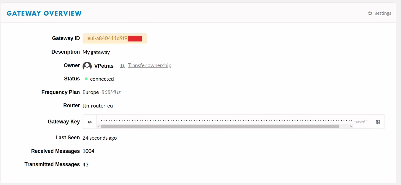 Tím jsme zvládli nastavit a zaregistrovat gateway a v dalším článku si vytvoříme LoRa Node, který bude posílat a přijímat zprávy z gatewaye.