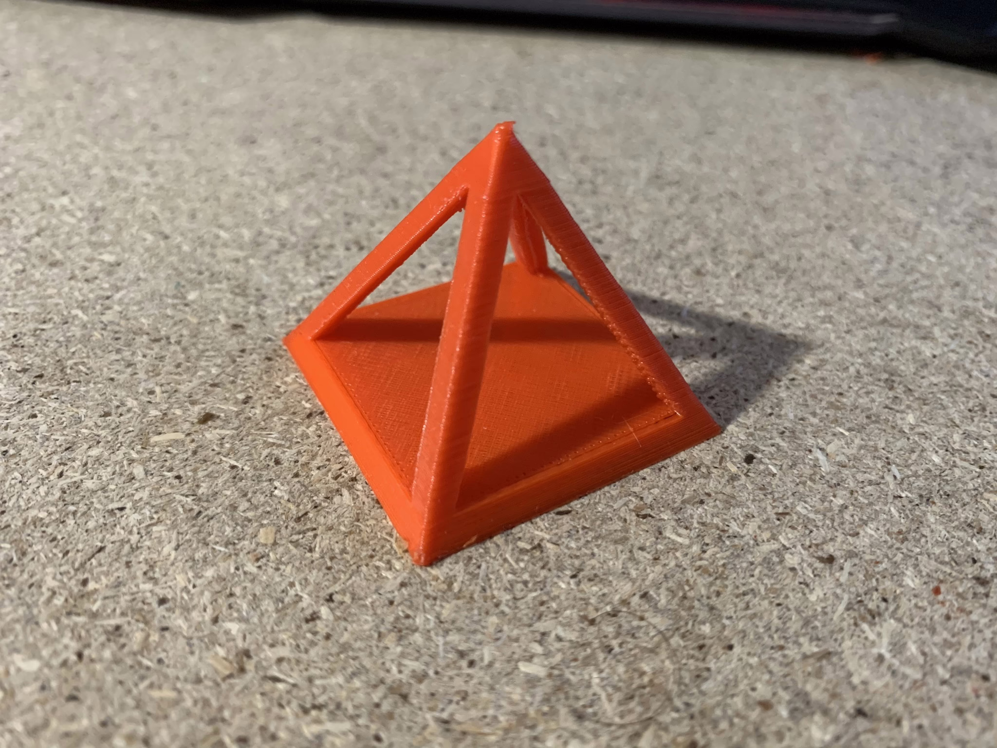 Zkusil jsem tedy další výtisk, ale tentokrát jsem odmotal dva metry filamentu (dostatek na vytištění pyramidky) z cívky tak, aby byl naprosto volný. Tisk se tentokrát povedl. Tudíž jediné a to velmi podstatné co bych této tiskárně vytknul je že nedokáže tisknout z plné kilové cívky. Proto jako první upgrade je potřeba předělat podávání filamentu na extruderu.