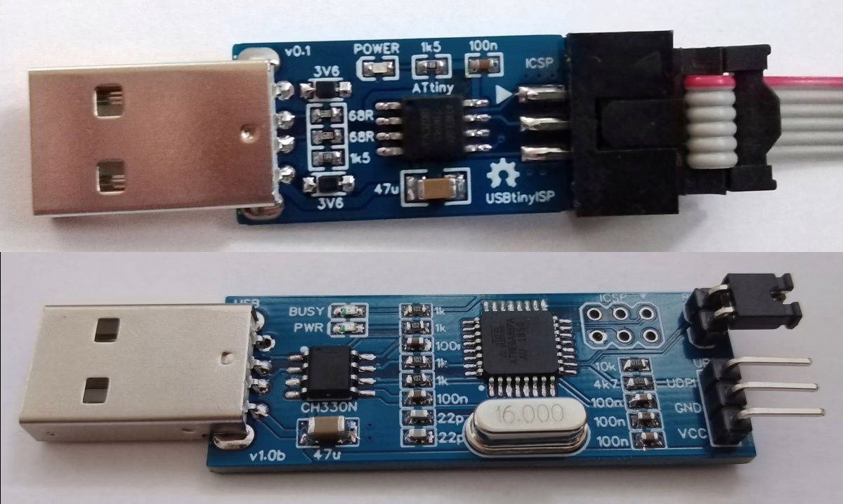 USBtinyISP – několik typů miniaturního programátoru s rozhraním ISP.