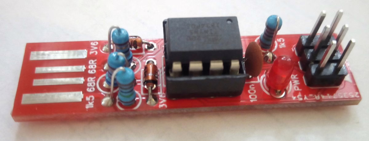 USBtinyISP s ATtiny2313 v THT verzi součástek.