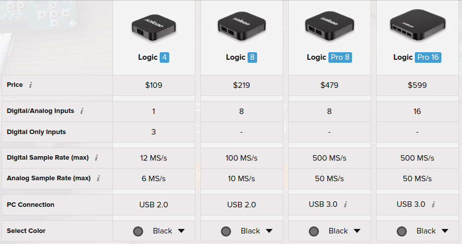 Nejnovější originální logické analyzátory od firmy Saleae jsou tyto.