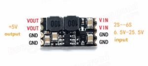 Rozsah vstupní může být od 5.3 V až do 26 V. Prodejce uvádí účinnost větší než 96% a zvlnění maximálně 30mV. Velikost DPS je 22.3 x 17 x 4.2 mm.