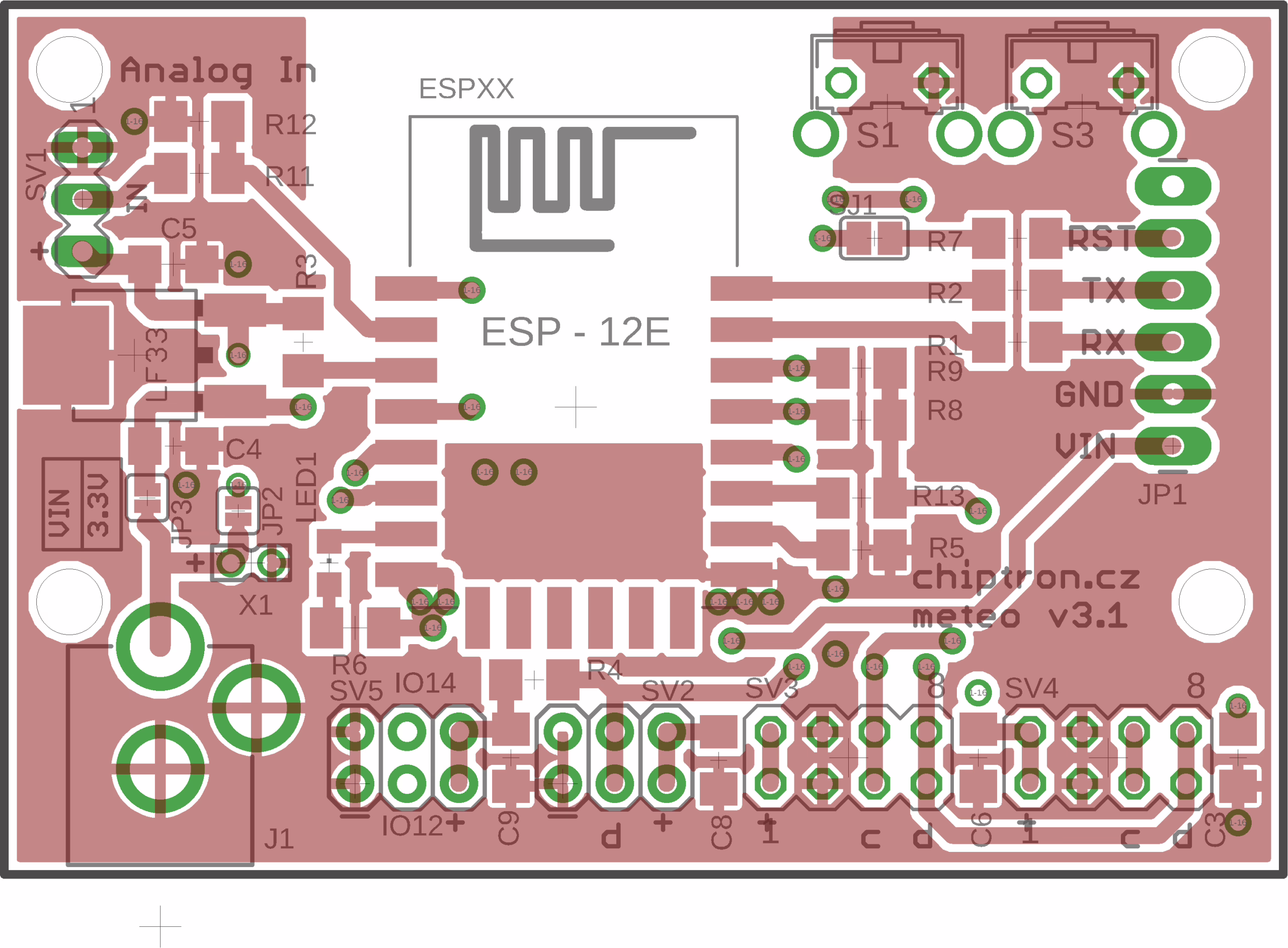 Původně zamýšlená deska Meteostanice MeteoV2 WiFi, která byla původně vymyšlena jako náhrada za nepřesný okenní teploměr za dvacet korun se díky připomínkám uživatelů upravil do univerzální podoby.