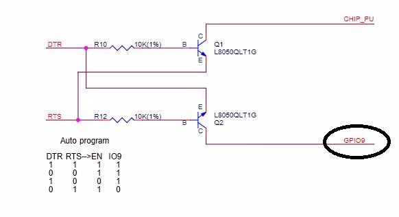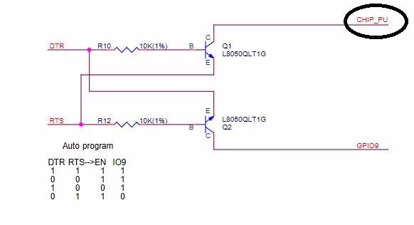K automatickému přepnutí do boot režimu je nutné přizemnit Enable pin (CHIP_PU).