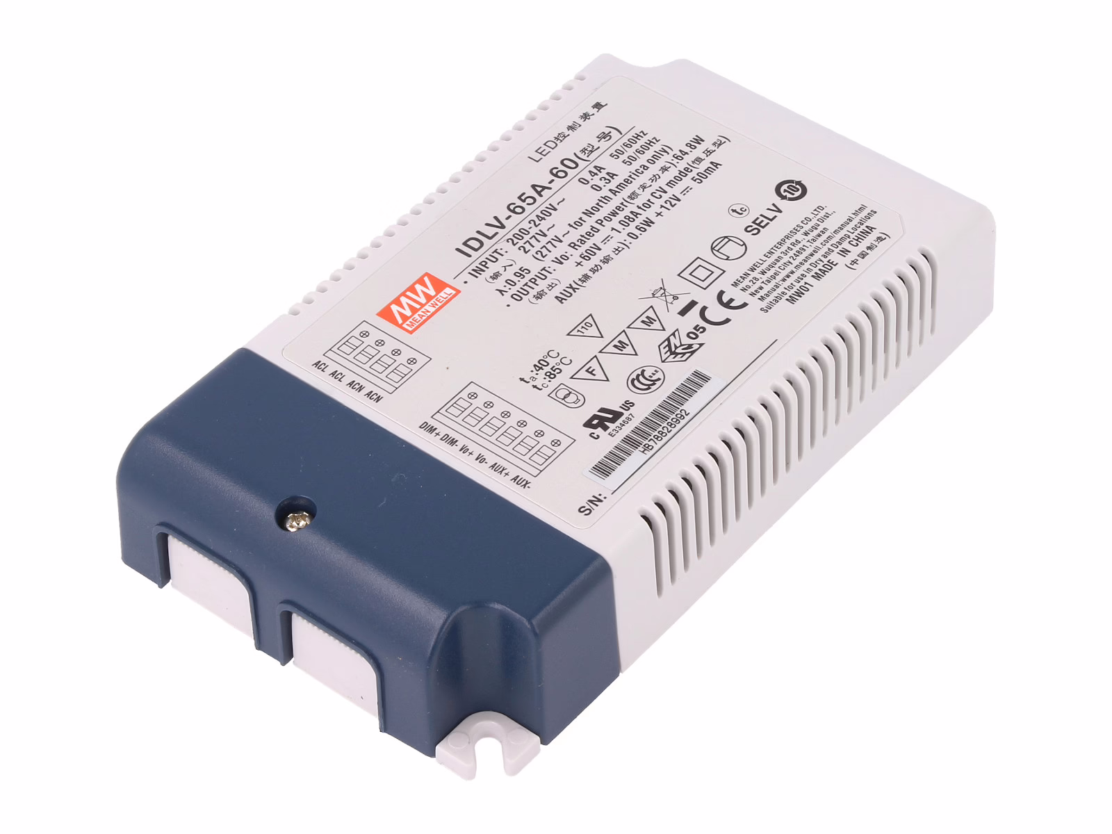 Řada IDL obsahuje dva typy napájecích zdrojů, které se liší označením. IDLV jsou určeny k provozu v interiérech. Mají konstantní výstupní napětí a intenzita světla je upravována pomocí PWM. Napájecí zdroje typu IDLC mají konstantní výstupní proud a jsou vhodné pro svítidla. Rozsah vstupního napětí se pohybuje od 90 do 295 V. Provedení splňuje požadavky pro třídu II/2. Jsou vybaveny funkcí stmívání, ale je třeba poznamenat, že stmívání pomocí DALI má pouze řada IDLC-45/65. Výstup pomocného napětí 12V lze použít k napájení chladicího ventilátoru nebo spolupracujícího rozhraní IoT. Dostupné jsou varianty o výkonu 25, 45 a 65 W.