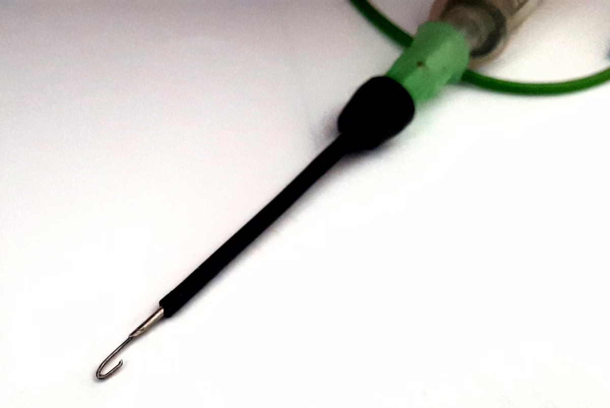 Háčkem a k němu připájený kabel s dutinkou na konci.