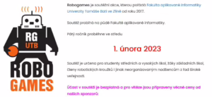 Robogames je soutěžní akce, kterou pořádá Fakulta aplikované informatiky Univerzity Tomáše Bati ve Zlíně od roku 2017. Soutěž probíhá na půdě Fakultě aplikované informatiky. Pátý ročník proběhne ve středu 1.
