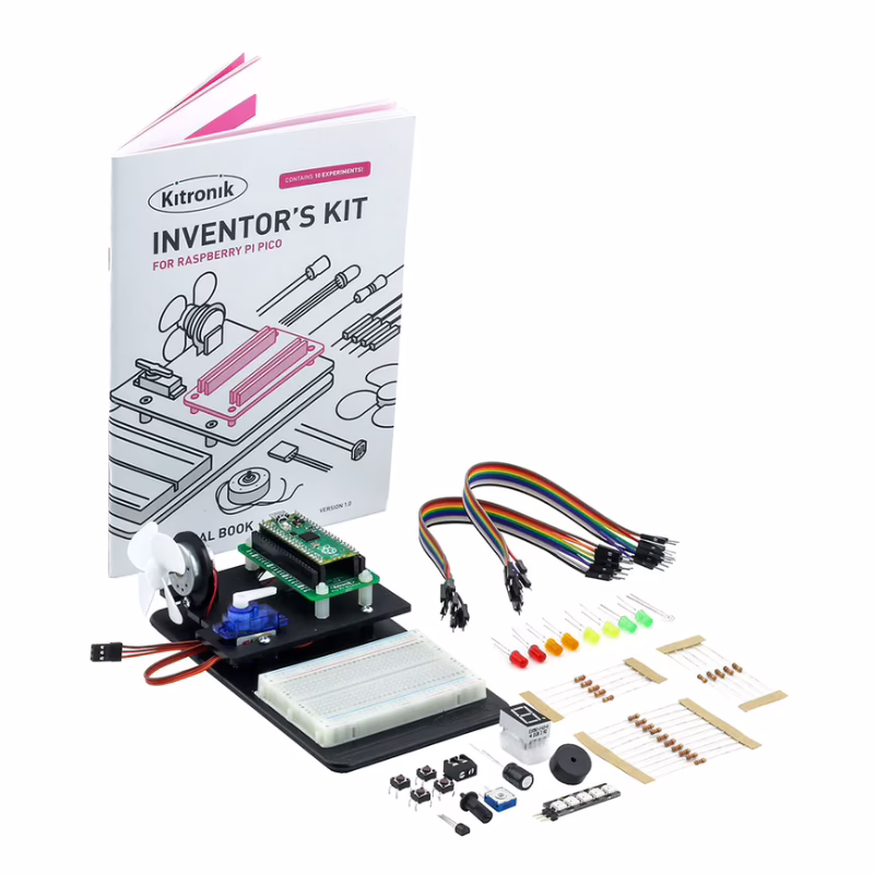 Skvělý způsob, jak objevit Raspberry Pi Pico! S Inventor’s Kit se zábavnou formou naučíte, jak konstruovat elektronické obvody a ovládat je pomocí Pico a MicroPythonu.