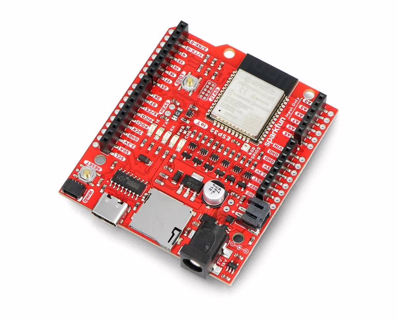 Vývojová deska SparkFun IoT RedBoard, kompatibilní s Arduino. Je vybaven čipem ESP32 s dvoujádrovým 32bitovým mikroprocesorem Xtensa LX6 taktovaným až na 240 MHz . Umožňuje bezdrátovou WiFi a Bluetooth komunikaci, díky čemuž najde široké uplatnění v projektech Smart Home a IoT.