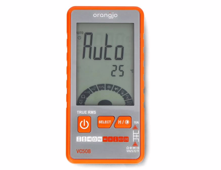 Orangjo je snadno použitelný multimetr. Zařízení má funkci automatického výběru rozsahu měření . VC508 dokáže měřit stejnosměrné napětí, střídavé napětí, stejnosměrný proud, střídavý proud, odpor, kapacitu a také teplotu, frekvenci a skutečnou efektivní hodnotu . Kromě toho má zařízení funkci testování spojitosti obvodů. Dále je vybaven bezkontaktním detektorem napětí NCV a funkcí svítilny.