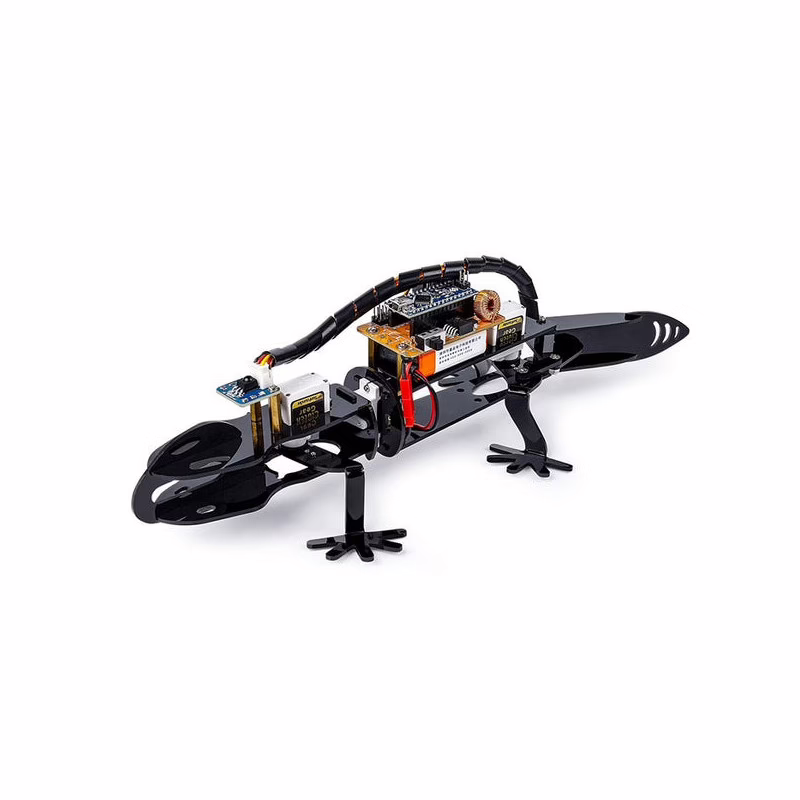 Vzdělávací sada určená pro začátečníky je založená na desce Arduino Nano. Robota v podobě ještěrky je možné ovládat prostřednictvím intuitivního grafického programování. Pro snadný začátek jsou k dispozici podrobné a srozumitelné příručky.