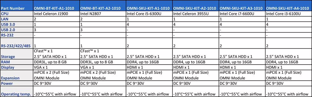 CPU box kity jsou založeny na procesorech Intel od Celeron N2807 až po Core i7-6600U. Všechny kity nabízejí pasivní chlazení bez ventilátoru, široký rozsah napájecího napětí 9 až 30V DC a rozsah pracovních teplot okolí od -10 do +55°C. CPU box kity je možné transformovat na box PC přidáním spodního krytu. Kity jsou dodávány bez RAM a SSD, nedělejte si však starosti, máme pro Vás řešení – průmyslové RAM a SSD od společnosti Apacer.