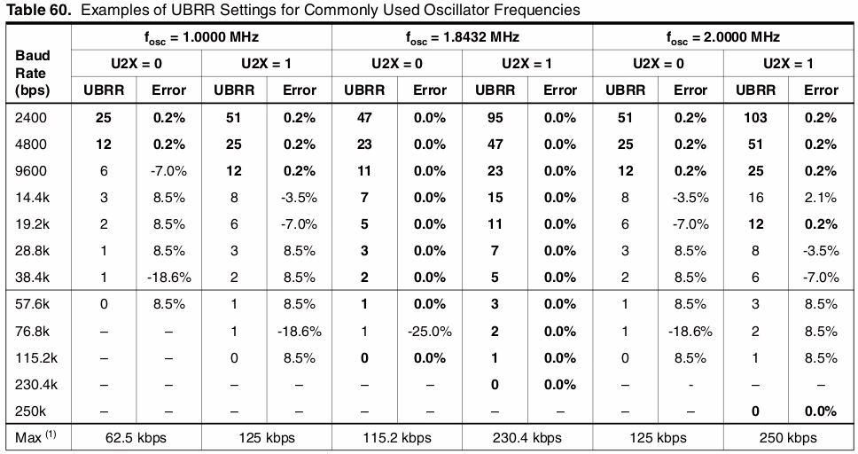 Tabulky pro nastavení UARTu: