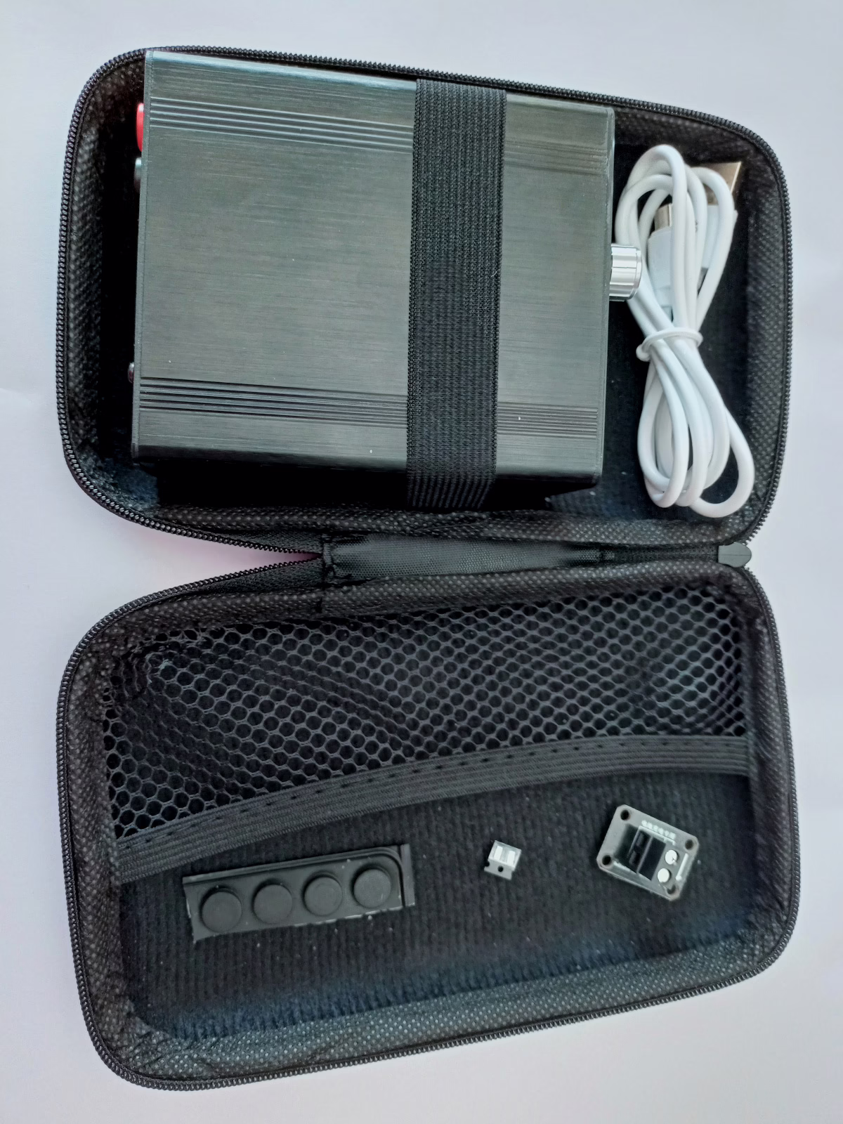 Zdroj, USB kabel, gumové nožičky a náhradní SMD pojistky přišly v pěkném obalu.