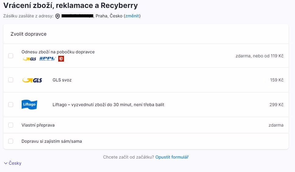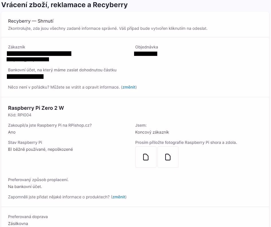 Na stránce https://rpishop.cz/content/31-reklamace-a-vraceni-zbozi vyberete možnost RECYBERRY.