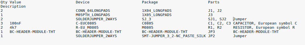 Na desce jsou konektory pro připojení ke Core modulu, tři čtyřpinové dutinkové lišty, blokovací kondenzátory ke každému napájení čidla, pull-up rezistory a dvě SMD pájecí propojky, kterými si zvolíte, zda budete používat I2C0 nebo I2C1.