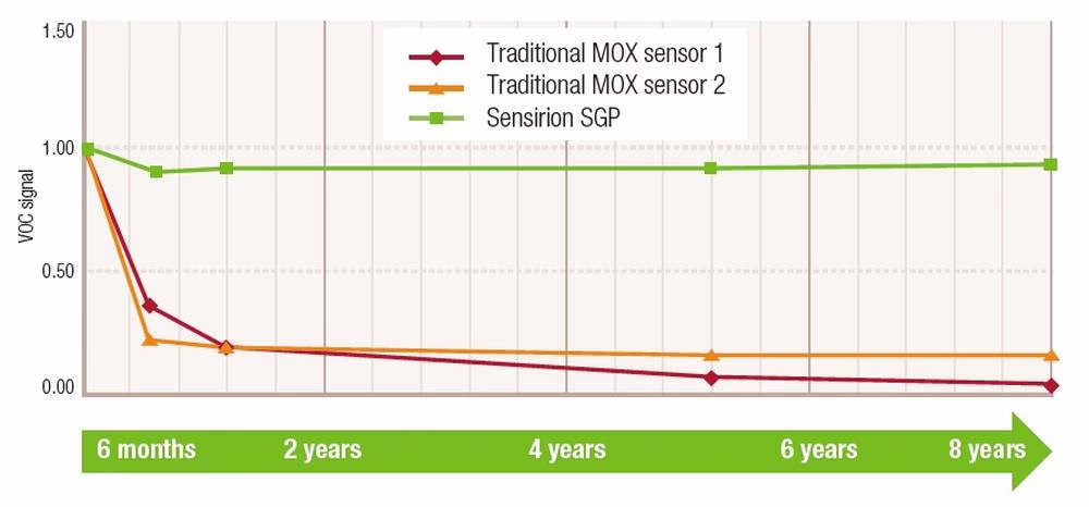 Omezení doby platnosti vztažné hodnoty vyplývá z vlastností MOX (metal oxide semiconductor) senzoru. Vztažná hodnota odpovídá určitému odporu snímacích elementů. Tyto odpory ale nejsou konstantní při konstantní koncentraci VOC. Během řádově týdnů až měsíců se změní tak, že by to ovlivnilo přesnost měření. Algoritmus kompenzuje tyto změny a neustále koriguje vztažnou hodnotu.