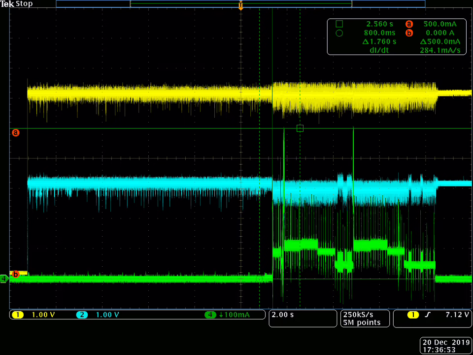 Jak můžete vidět, špičkový proud je až 500mA a měnič si s nimi, s pomocí kondenzátorů, hravě poradí.