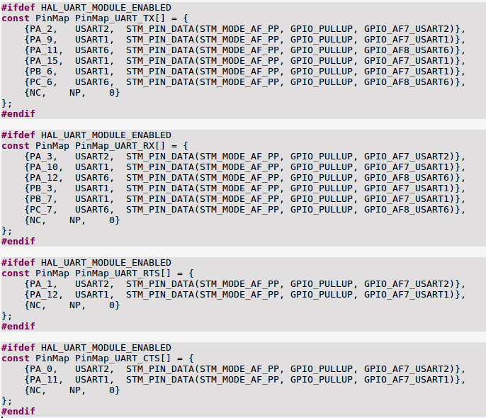 Jak jsem zmínil výše, mikrokontroléry STM32 zpravidla obsahují více USART (Serial) sběrnic. Využít můžete všechny, pokud nedojde ke kolizi zapojení. STM32 disponují možností „přepnout“ výchozí zapojení sběrnice na alternativní, tzn. Rx a Tx USART sběrnice 1 bude na jiných GPIO. Tyto alternativní volby mohou být dvě a více.