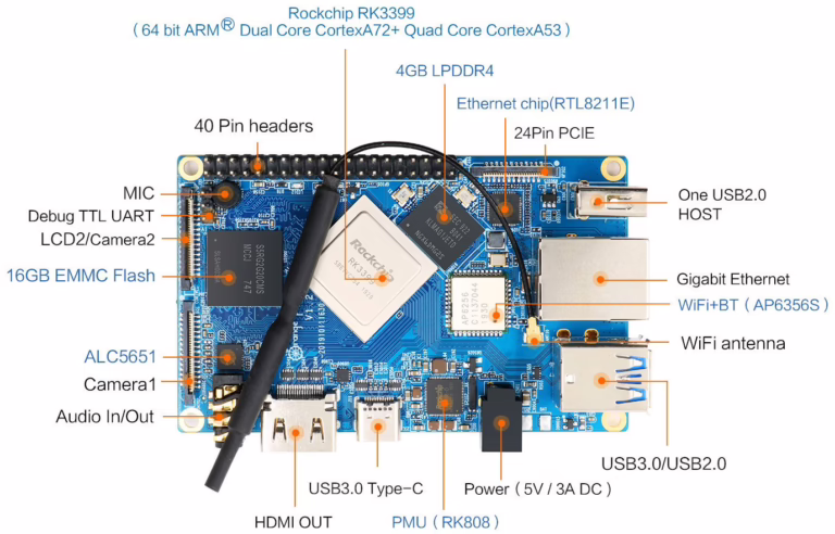 Aktualizace: Orange Pi 4 a 4B (AI accelerator chip) s RK3399, 4 GB RAM, 16 GB eMMC od 50 USD