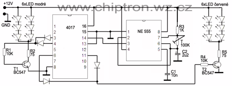 Jedná se o jednoduché zapojení operačního zesilovače s několika součástkami okolo.