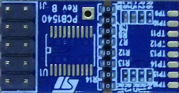 STMicroelectronics zvěřejnilo shield pro Nucleo64 právě s tímto obvodem, dokonce třemi – jeden přímo na shieldu, dva označované jako satelitní, které jsou připojeny přes 10 pin header.