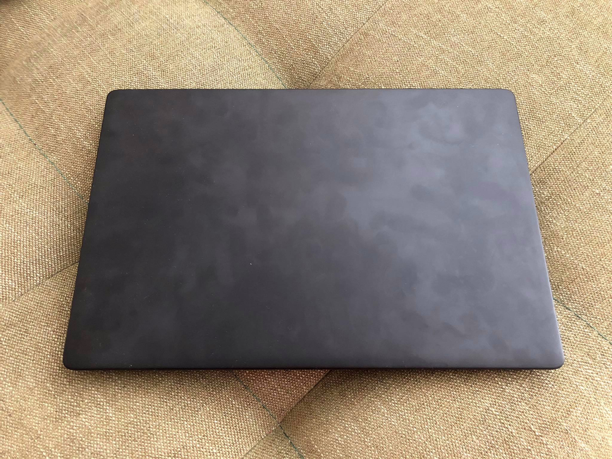 Po odtranění ochraného obalu kolem notebooku na mě čekalo milé překvapení v podobě tmavě kovového šasi notebooku vyrobeného ze slitiny hořčíku namísto, jak je v této cenové kategorii poměrně běžné, plastu. Na víku nenajdeme žádný rušivý element v podobě loga výrobce a ani po otveření neuvidíme nálepky s Windows, HDMI či Intel Inside. Jen zespod jsou po stranách mřížky pro reproduktory a v rozích jsou umístěny gumové nohy, aby notebook nezklouzával ze stolu. Po levé straně je vybaven USB-C a USB3 portem spolu s jackem pro napájení a k tomu indikační LEDkou. Na pravé straně nalezneme slot na MicroSD kartu, USB2 port a audio jacka.