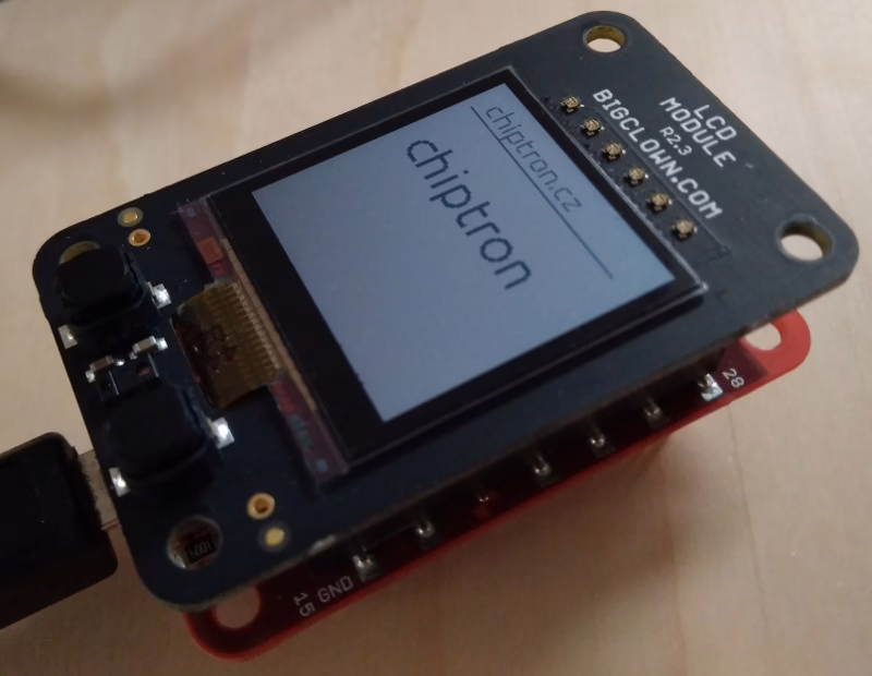 Dominantou této desky je velmi pěkný a kontrastní LCD značky Sharp s rozlišením 128×128 px o velikosti 1.28″.