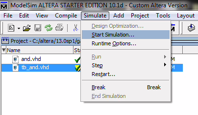 Jako vývojové prostředí budeme používat ModelSim od Altery.